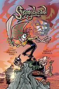 The first volume of the webcomic Strangebeard! The World's Deadliest Pirate is a Twelve-Year-Old Girl! Softcover, 140 pages, perfect bound, with a gold foil logo.